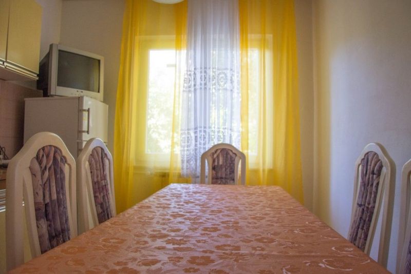 Apartman se nalazi u prizemlju i ima 2 spavaće sobe – u jednoj se nalazi 1 bračni krevet + 1 single krevet dok se u drugoj nalazi 1 bračni i 2 single kreveta na kat, 1 kuhinja, 1 kupaona, terasa ispred apartmana, klima uređaj, TV/SAT. Apartman je za 4+3 osobe.