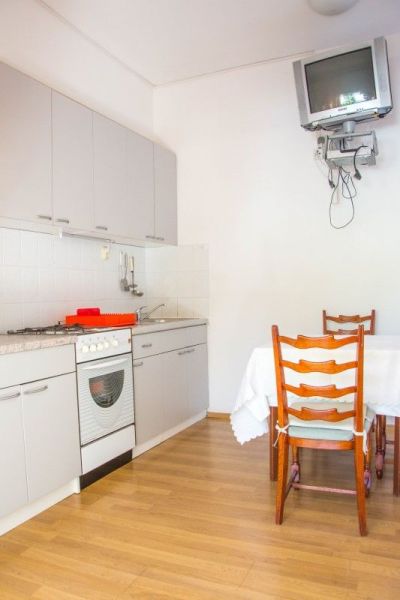 Apartman se nalazi u prizemlju i ima 1 spavaću sobu sa bračnim krevetom i dva single kreveta (na kat), kuhinju, kupaonu sa tuš kabinom, terasu ispred apartmana, klima uređaj i TV/SAT. Apartman je za 2+2 osobe.